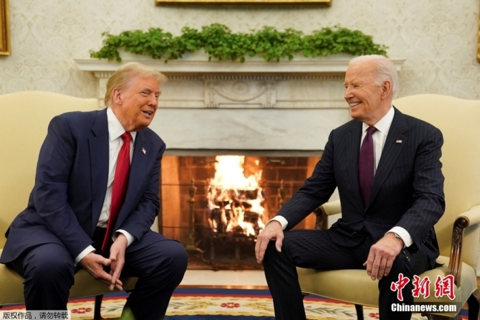 资料图:当地时间2024年11月13日,拜登在白宫会见特朗普。